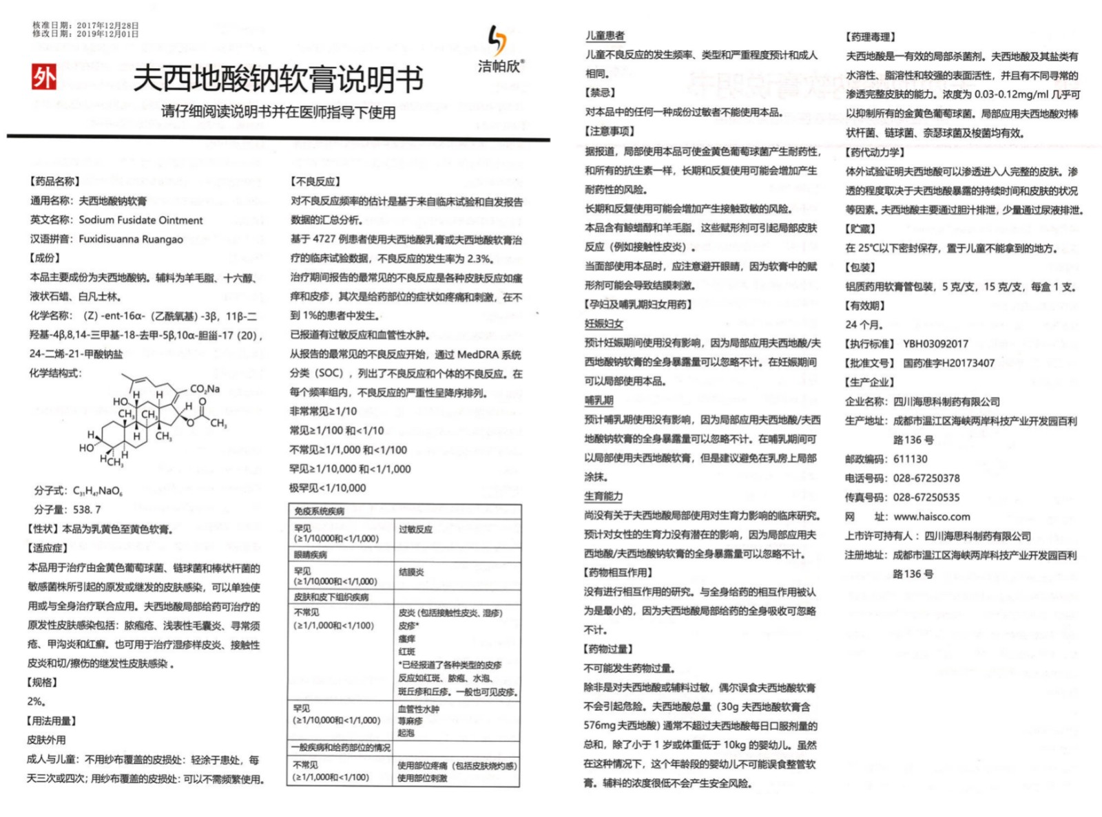 本品用于治療由金黃色葡萄球菌、鏈球菌和棒狀桿菌的敏感菌株所引起的原發(fā)或繼發(fā)的皮膚感染,可以單獨(dú)使用或與全身治療聯(lián)合應(yīng)用。夫西地酸局部給藥可治療的原發(fā)性皮膚感染包括:膿皰瘡、淺表性毛囊炎、尋常須瘡、甲溝炎和紅癬。也可用于治療濕疹樣皮炎、接觸性皮炎和切/擦傷的繼發(fā)性皮膚感染。
